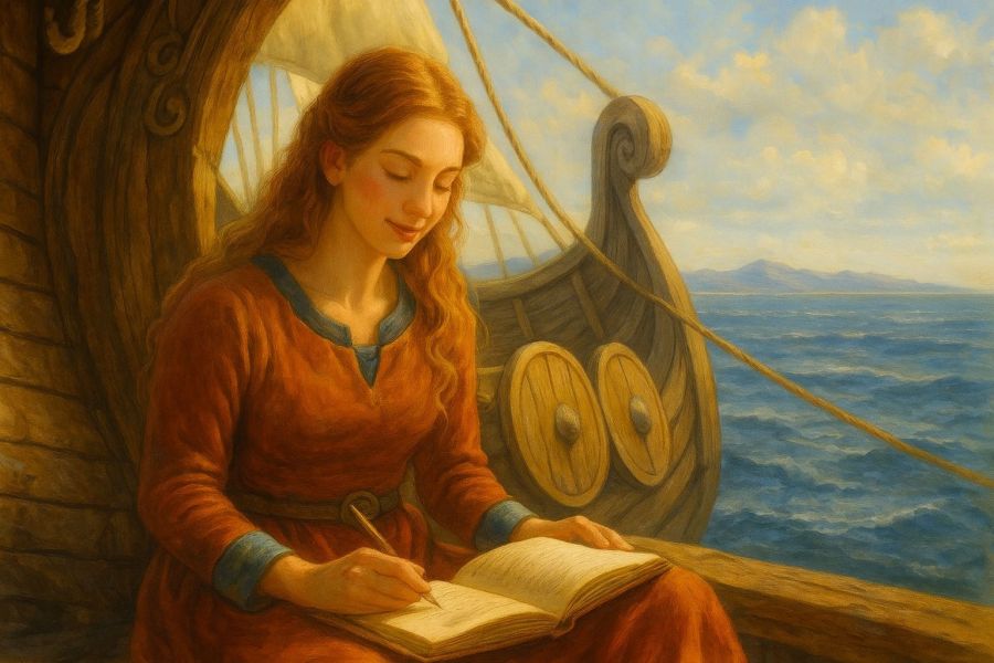 Vor meinem inneren Auge erschien sie mir, umhüllt von einem schottisch- karierten Wollumhang – vermutlich, weil ich derzeit tief in meinem Buchprojekt in den nordischen Ländern unterwegs bin. Vielleicht haben die Landschaften sich in meine innere Bilderwelt eingeschlichen. Oder vielleicht war es einfach ihre Art zu sagen: „Es ist kalt geworden.“